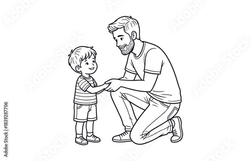 Father and son one line drawing dad lifting child vector illustration on transparent background
