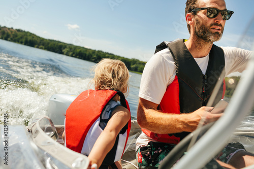 family, eltern, father, boat, daughter, people, man, adult, family life, leisure, sailing, son, archipelago, blue, sunny, brown, hair, beard, mobile phone, phone, communication, smartphone, navigate, photographing, boy, blond