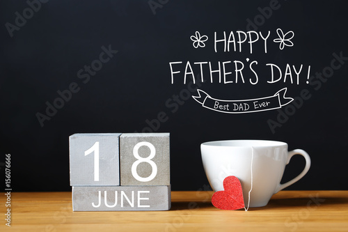june, 18, 18, 2017, 2023, 2028, calendar, date, father, father, day, happy, father, love, celebration, greeting, card, concept, holiday, event, text, message, gift, hot drink, cup, drink, nubes, wooden, block, black, white, tea, beverage, ornament, decoration, silver