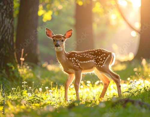 Fawn in sunlit forest (1)