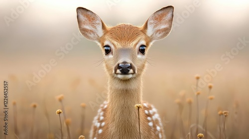Fawn portrait, autumn field, nature, wildlife, calm background, for nature publications