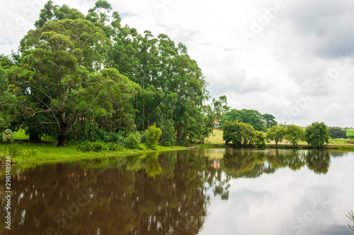 lake, water, reflex, grove, grass, vegetation, landscape, countryside, countryside, overcast, farm