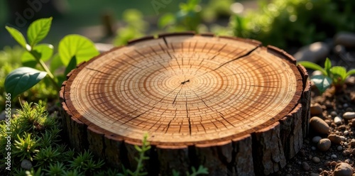Felled oak, exposed rings showing years of growth, rough, aged, timber