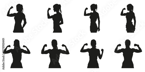 woman, fitness, strength, empowerment, vector, set, silhouette, health, wellness, glyphs, exercise, muscle, illustration, collection, pose, physical exercise, gym, training, body, confidence, power, female, athlete, flexing, arm, bicep, sport, motivation, lifestyle, physical, activity, icon, symbol, black, shape, strong, healthy, active, fit, energetic, personal, solid, bold, pictogram, digital, flat, isolated, graphic