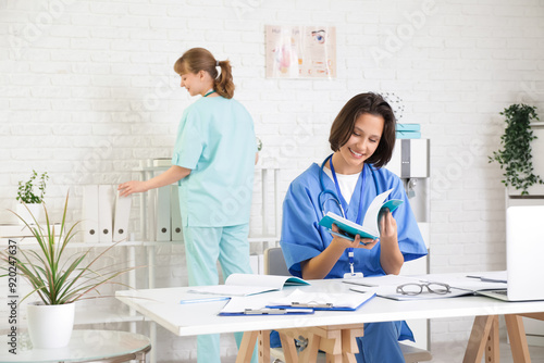 clinic, copybook, female, intern, medicals, studying, table, adult, assistant, background, care, caucasian, college, colours, disease, doctor, education, girl, happy, health, hospital, disease, indoor, internship, job, cognition, learning, medicine, nurse, people, person, portrait, profession, disease, sitting, smiling, student, study, treatment, uniform, university, woman, woman, work, young