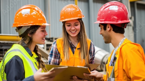 Female supervisor in a manufacturing plant, overseeing workers on the production line.