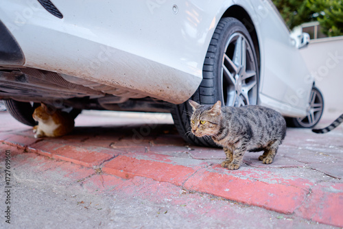 wheel, cat, car, adorable, animal, animal, beware, closeup, cute, domestic, domestic animals, expression, eye, felino, felino, fluffy, fur, kitten, cat, looking, nature, outdoors, pavement, pet, setting, stray, street, suspicious, tabby, tire, town, transportation, under, upset, urban, waiting, wildlife