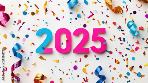 2025, new, year, celebration, confetti, party, festive, background, holiday, background, happy, new year, event, design, greeting, card, poster, banner, template, christmas, colourful, decorative, bright, glistering, shiny, ribbon, sparkle, abstract, texture, image, graphic, vector, illustration, colours
