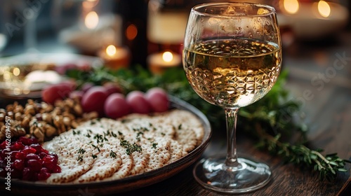 Festive appetizer platter with wine