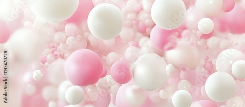 Festive background of soft pink and white balloons creating a cheerful atmosphere for celebrations and special events