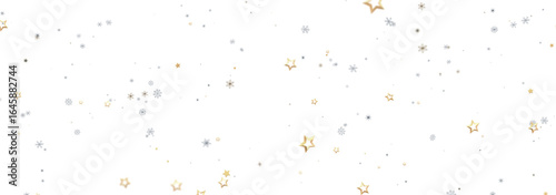 Festive background with gold and silver stars and snowflakes. Perfect for holidays.