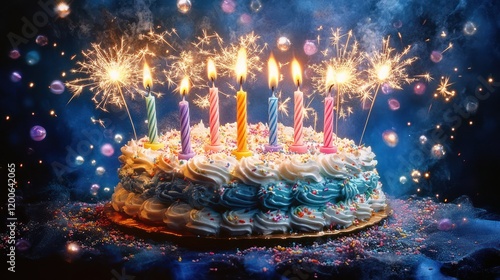 cake, birthday, candle, sparkler, celebration, party, festive, sweet, delicious, dessert, food, happy, joy, fun, event, magical, whimsical, treat, sweetness, deliciously, colourful, bright, sparkling, night, dark, smoke, magic, fantasy, background, holiday, anniversary, special, occasion, gathering, family, friends, love, happiness, memory, moment, childhood, growth, life, year, age, wishes