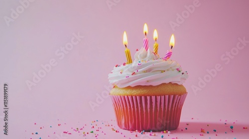 Festive Birthday Cupcake with Candles Sprinkles on Pink