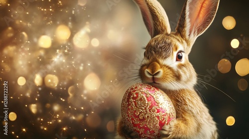 easter, rabbit, festive, copy space, egg, light, rabbit, ornate, sparkle, decoration, animal, cute, holiday, celebration, gold, red, bokeh, background, shiny, adorable, craftsmanship, seasonal, faith, communion, spiritual, tradition, symbol, catholic, warm, resurrection, enchanting, sunday, holding, fluffy, jesus christ, prayer, orthodox, creative, shimmering, intricate, joy, easter, spring, charming, sparkling, cheerful