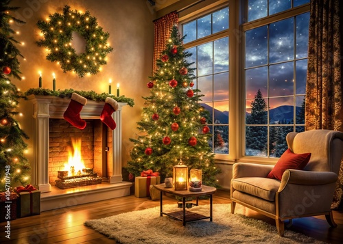 christmas, holiday, christmas tree, snow, living room, nostalgia, stocking, gift, fireplace, winter, celebration, joy, greeting card, seasonal, family, togetherness, cheer, home, warmth, festivity, winter landscape, holiday spirit, snowflake, ornament, pine, chaplet, joyful, tradition, love, happiness, ambience, cheerful, decoration, cosy, inviting, holiday home