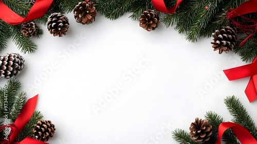 Festive Christmas Frame with Pine Cones and Red Ribbon