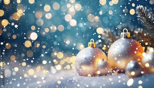 Festive Christmas Ornaments with Colorful Bokeh Lights