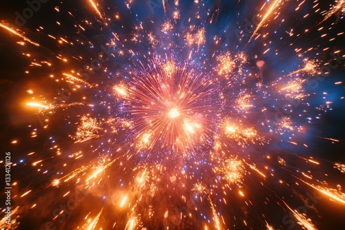 fireworks, explosion, night, sky, celebration, spark, bright, colourful, orange, red, blue, purple, gold, yellow, festive, holiday, party, event, spectacle, amazing, vibrant, dazzling, radiant, energy, excitement, joy, happiness, beauty, magical, wonder, texture, abstract, background