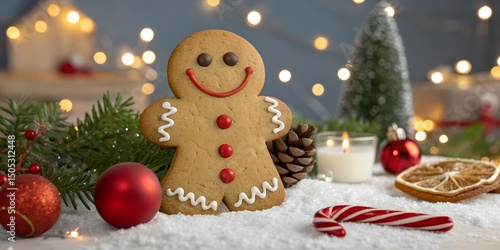 Festive Gingerbread Man Cookie with Christmas Holiday Decorations