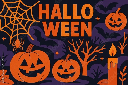 halloween, pumpkin, bat, spider, web, candle, skittish, decoration, autumn, festive, orange, purple, holiday, celebration, october, creepy, treat, costume, night, fun, eerie, haunted, design, seasonal, symbol, festivity, atmosphere, party, gloaming, ghost, fantasy, fright, candle, graphic, webbing, tradition, family, gathering, theme, season