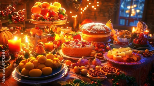 celebration, decor, dessert, festivity, food, fruit, gathering, holiday, home, light, meal, nature, party, pleasant, table, texture, rustic, sweet, warm, autumn, orange, yellow, cosy, arrangement, epicure, baked, beautiful, delicious, seasonal, enjoyment, festive, rich, banquet, cookery, homemade, atmosphere, presentation, treat, sweetness, culinary, tradition, visual, indulgence, variety, colourful, inviting