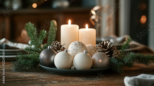 festive, tabletop, scene, personalized, bauble, candle, centrepiece, holiday, decor, bauble, table, decoration, pine, cone, greenery, ornament, christmas, celebration, winter, cosy, warmth, elegant, style, glowing, family, seasonal, tradition, arrangement, ambient, design, interior, artistic, craft, gift, hand-made, pine cone, peaceful, joyful, domestic, inviting, dinner, evening, aglow, shimmering, spruce, captivating