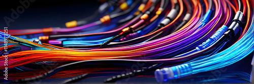 Fiber Optic Cables in Electronics Electric Power Communication Data Server Ethernet Network internet technology banner