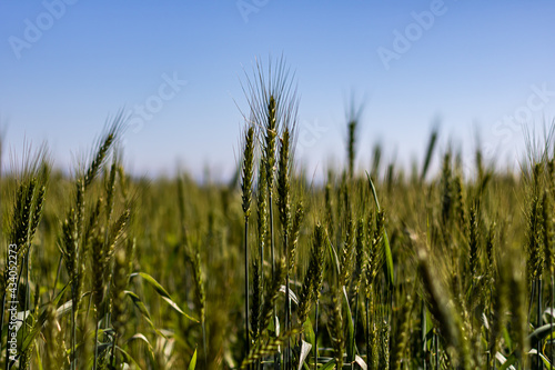 wheat, field, agriculture, sky, nature, cereal, plant, farm, crop, summer, grain, harvest, green, food, corn, ear, blue, rural, landscape, farming, gold, barley, ripe, rye, growth