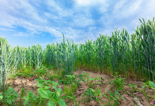 field of wheat, green fresh plant background