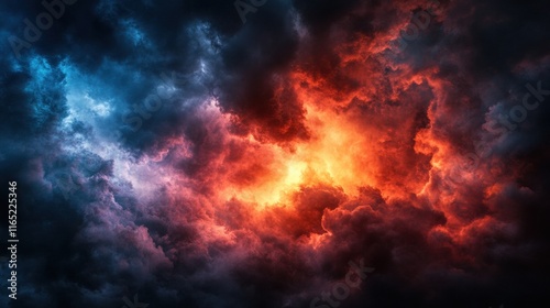 cloud, sky, dramatic, dark, fire, red, orange, blue, purple, storm, weather, moody, atmospheric, intense, energy, power, heaven, hell, apocalypse, fantasy, mystical, ominous, nature, cloudscape, dark clouds, contrast, vibrant, light, shadow