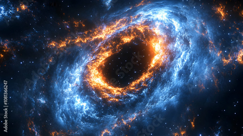nebula, space, cosmic, galaxy, digital artwork, artwork, astronomy, science fiction, fantasy, background, abstract, illustration, swirling, fiery, blue, orange, glowing, ring, dark, expanse, star, night sky, celestial, universe, vibrant, colours, energy, light, texture, pattern, interstellar, outer space, deep space, futuristic, magical, mystical, aethereal, captivating, mesmerizing, beautiful, stunning, science, nature