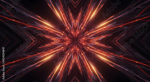 Fiery Geometric Symmetry Exploding in a Dark Kaleidoscope With Neon Edges