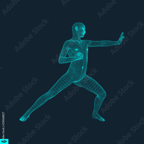 Fighter. Fitness sports. Martial arts. 3D Model of Man. Sports S