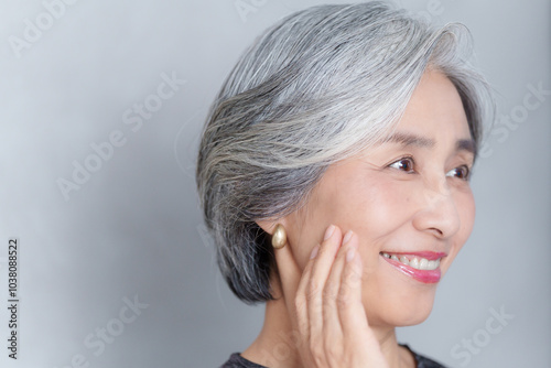 白髪のシニア女性のスキンケア(美容・ビューティー)