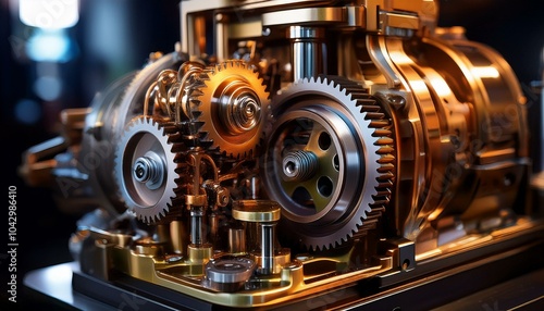 기계의 내부 구조 기어와 피스톤