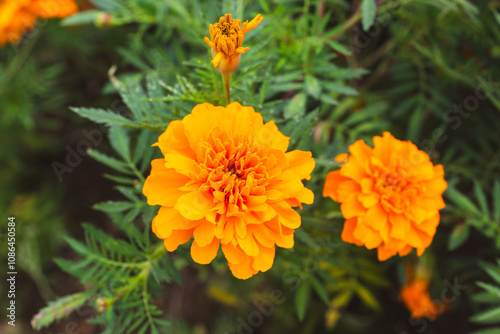 色鮮やかなオレンジ色のマリーゴールドの花