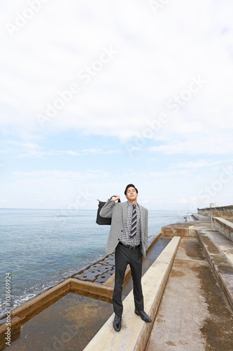 japanese, sky, sea, water, view, landscape, nature, japan, pier, levee, way, okinawa, okinawa, resort, tourist attraction, businessman, man, man, business, health, model, people, smile, people, happy, happiness, healthful, expression, light, fun, relax, work, adult, salaried employee, enjoyment, smile, person, lovely