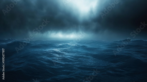 霧が立ち込める暗い大海原の風景