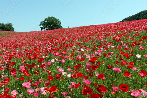 field, poppy, flower, landscape, meadow, nature, sky, red, bloom, beauty