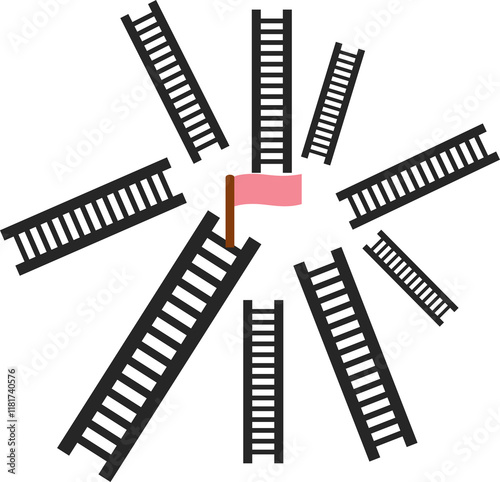aim, achievement, roadmap, illustration, business, suit, mountain, climb, milestone, goal, starting, career woman, ol, flag, flag, sport, symbol, silhouette, blue, icon, concept, signs, design, time, web, network, communication, buttons, ladder, carrier, city, building, architecture, city landscape, horizon