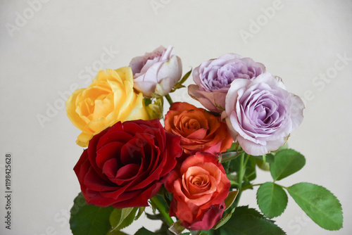 purple, yellow, rose, bouquet, red, floral, lovely, bloom
