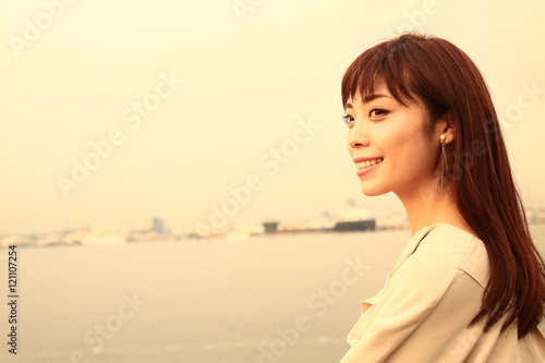 woman, portrait, pretty, pretty, model, beauty, long hair, brown-haired, expression, smile, advertisement, material, business, space, fall, evening, journey, travel, sky, light