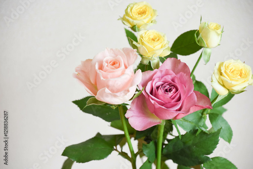 yellow, purple, rose, flower, bouquet, pink, bloom, floral