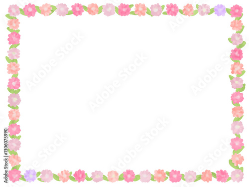 ピンク系カラフルなお花のフレーム枠のイラスト