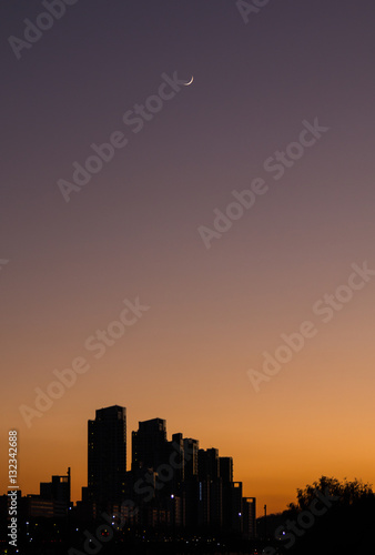 city, city centre, seoul, silhouette, building, apartment, evening, afternoon, moon, heaven, sunset, sunset, skyline, architecture, background, background, landscape, scenic, sensibility