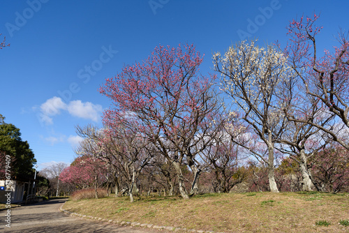 february, winter, flower, osaka, japan, plant, blue skies, sky