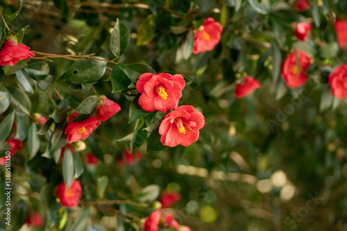 flower, nature, red, garden, flowering, plant, bloom, up, beauty, leaf, floral, macro, pigmentation, camelia, camelia, winter, image, material, landscape, japan, japanese, sunny