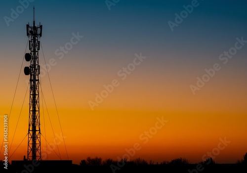 transmission tower, tower, antennae, radio, communication, radiowaves, network, base station, height, construction, silhouette, sunset, sunset, orange, sky, lovely, landscape, nature, wire