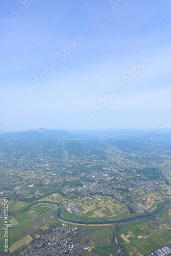 landscape, idyl, farming, symbiosis, countryside, paddy, plane, sky, flight, sky, nature, sunny, japan, travel, journey, copy space, dynamic, vision, scene, altitude, wallpaper, material