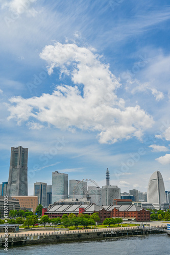 yokohama, city, building, highrise, skyscraper, architecture, building, sky, cloud, blue, landscape, kanagawa, business, office, port, sea, seaport, harbor, copy space, blank space, background, advertisement, background, bg, image, material, tour tourism, tourist attraction, travel, journey, showplace